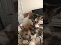 Tot (long hair)- loves attention and she is very vocal to get it. She wants to be picked up and pet as soon as you see her. She is sweet and friendly. She gets along with other cats, is used to being held by little hands, and has gotten used to the resident dogs in her foster home (although she prefers to keep her distance).