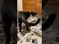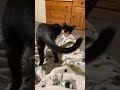 Florence and Smokey chase each other, wrestle and play with toys together. Check out the videos below of Smokey hiding under a rug then popping out to scare Florence, and of Smokey playing with Florence's tail.