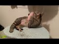 She loves to be petted and will roll over and purr up a storm. She loves to lie in my lap. As soon as I sit in the armchair in my foster room, she comes right over to join me.