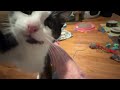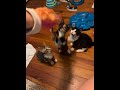 Ciao is charming old tuxie male with 4 white paws, a pinknose, white chest and belly. He’s stunning and knows it. He’s a very active guy who has no intentions of sitting still unless it’s for pets and cuddles. He loves to play with absolutely anything, including the sock with my big toe inside! Ciao also loves Churus.