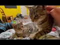 Tip Toe is outgoing and confident, and acclimated quickly to their new foster home. He loves to be petted and will purr up a storm. He even purrs if you just make eye contact. He is active and playful, even chasing his tail (see video). He also loves to relax and be a lap cat. He is such a character with his antics!