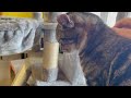 Pilgrim even met the Great Dane in her foster home and did very well. (See video) She was understandably cautious at first, but after about 10 minutes, she came out of the foster room to explore and be near the dog. We think she would be fine with a dog who is respectful of cats, given time to adjust with a proper introduction.